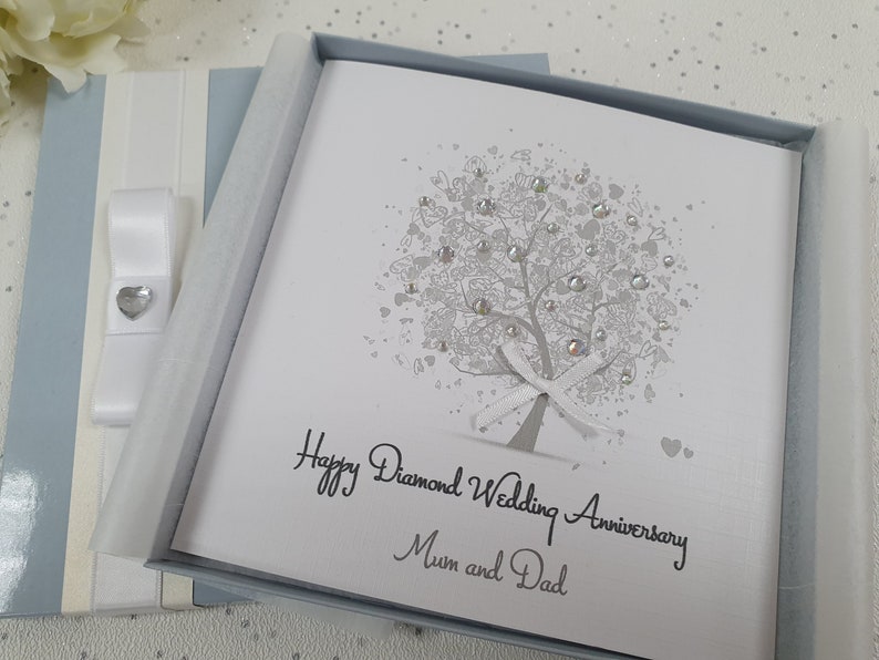 A wedding anniversary is the anniversary of the date a wedding took place. Choose from any of our diamond anniversary accessories below. With canva, you can make impressive wedding anniversary cards in just a few clicks. 60th diamond wedding anniversary card by the hummingbird.