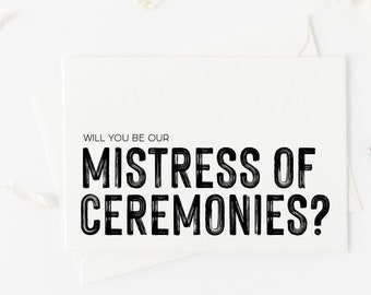 Here's one example, from a passage describing a ceremony in a masonic temple: Francis fish did a great job as mistress of ceremony. My husband and i have been asked to be the master & mistress of ceremonies at a wedding. The most common mistress ceremonies material is glass.