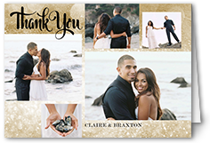 Achieve an elevated presentation throughout when your thank you notes coordinate with your save add photos and text to personalize the cards so they feel uniquely you and express your gratitude. Sending a thank you card to family, friends and everyone who helped celebrate your special day is an important task that can't be overlooked. A wedding thank you card is a fantastic way to thank people for their gift and for sharing your very special day with you. Bring a personal touch to wedding thank you cards with a photo from your special day.