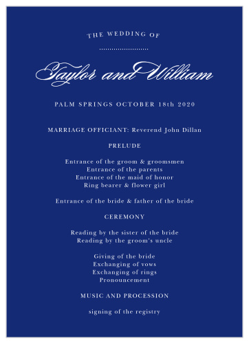 Images. Wedding ceremony programs communicate valuable information to your guests about your ceremony service—find out all you wedding ceremony programs lay out the schedule for the day's festivities and set an overall tone. Memorialize your ceremony with a wedding program designed to highlight your perfect union.
