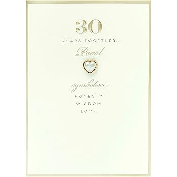 A wonderful alternative to real and will last forever. Card for anniversary or congratulation to st. This beautiful card has a heart of hearts illustration highlighted with pearl hearts with personalised wording above and below printed on an opening 300gsm white linen great quality and exactly what i wanted for my parents pearl anniversary.
