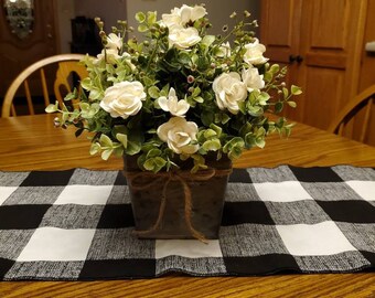 Your table decor is one of the most effective ways to express your personal style. Choose from wedding table centerpieces, wedding reception centerpieces, or bridal shower centerpieces. Classic centerpiece with white roses, greenery and modern vase. Round tables with elegant tall centerpieces.