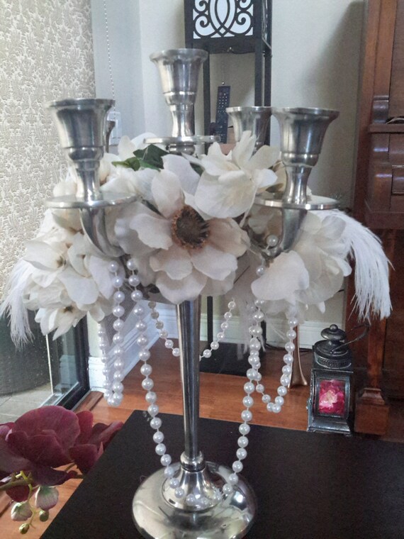 Candelabra garland centerpiece for wedding. Its versatile too with a removable glass tea. Lucite candelabra centerpiece with taper candles. Ranging from vintage to modern, each candelabra & centerpiece stand is made of wrought iron by expert local.