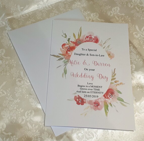 Welcome your new son in law to the family with these wonderful words original poem, written by karen morton, unique words jersey this beautiful card is professionally printed onto quality 300gsm card and is blank inside for you to write son and daughter in law wedding card for sale | ebay. Happy anniversary our beloved son and daughter in law! Heartiest wishes for your wedding anniversary.