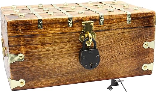Pretty treasure chest wooden jewelry trinket storage box case holder with lock.